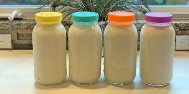 Fresh raw goat's milk is produced daily each Spring and Summer. Much of our milk is used to feed bottle baby goats and to make cheeses & Greek style yogurt for our personal consumption. We also provide fresh and frozen goat milk for bottle feeding baby goats.