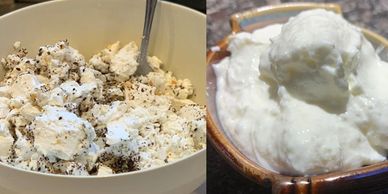 Chevre cheese is our favorite to make. We make a lot of different flavors and "Everything bagel" is a favorite. Thick Greek style yogurt is also a house favorite. Our dairy products are for our own personal consumption.