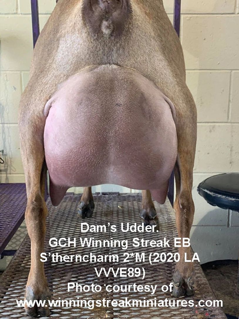 Dam's Udder. GCH WINNING STREAK S'THERNCHARM 2*M. Photo courtesy of winningstreakminatures.com