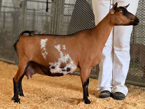 Nigerian Dwarf - DOB: 5/13/2020. D'Bomb is a fine example of a very proportionate and correct mature Nigerian Dwarf doe. She is a beautiful brown chamoisee color with bright blue eyes. She has an amazing temperament, and is an easy milker. We are excited to have her here on lease at the Looney Bin Farm.